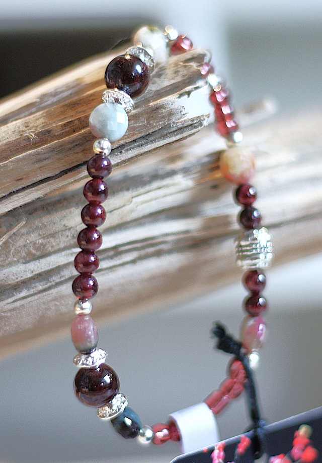 Composé de perles naturelles de Tourmaline Multicolore et Grenat, il t'aide à te protéger, t'ancrer et développer une force intérieure au quotidien.