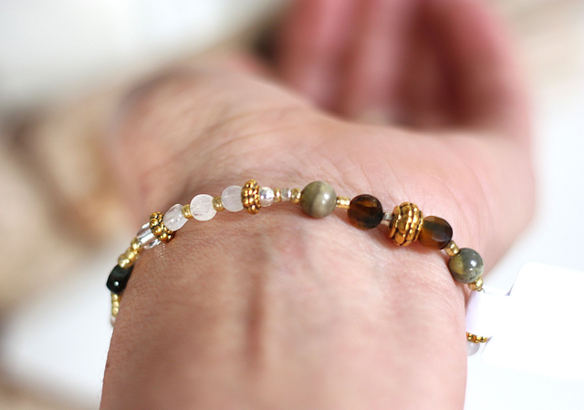 Un bijou en pierres naturelles pensé pour toi, afin de t'apporter protection et harmonie au quotidien. Il est composé de perles en Jaspe Bumblebee, Pierre de Lune Bleuté Facettée, Œil de Tigre Blanc Facetté et Corne, réunissant des énergies complémentaires pour soutenir ta stabilité émotionnelle, ta concentration et ton bien-être.